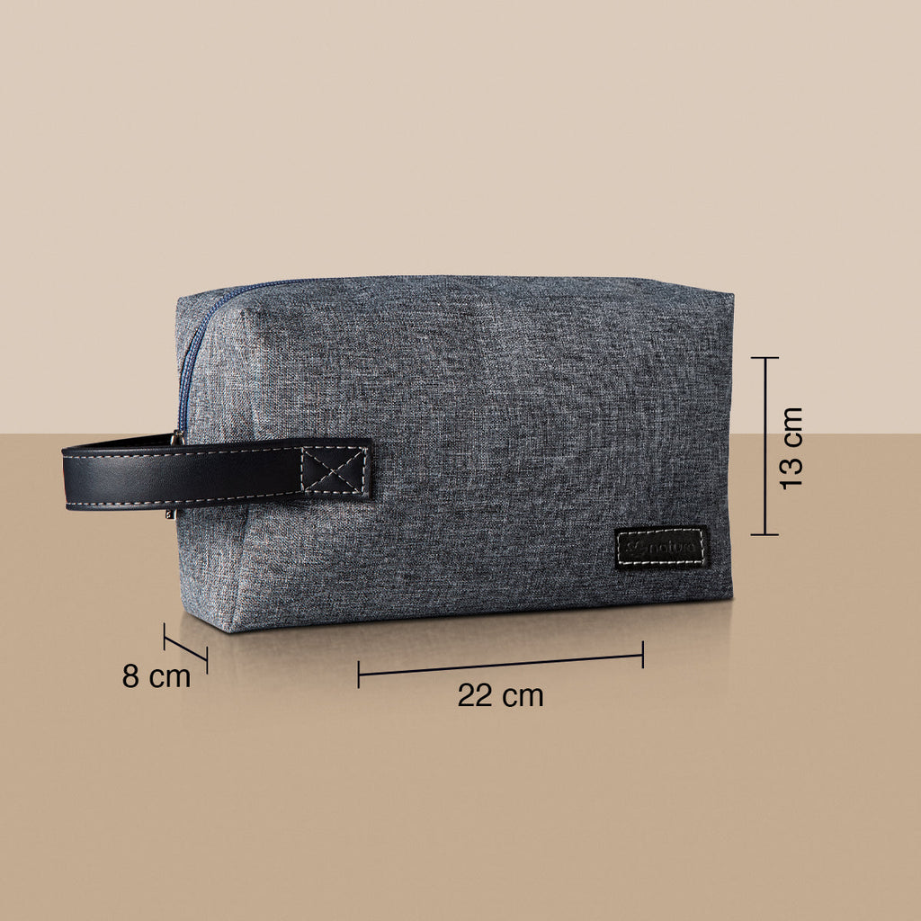 • nécessaire confeccionado em lona, um material resistente e durável para levar seus itens de autocuidado.